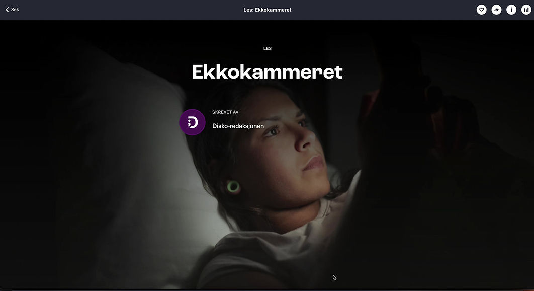 Disko ble utviklet som markedets første digitale strømmetjeneste for videregående skole. Her kan lærerne enkelt sette sammen egne læringsopplegg eller velge blant allerede kuraterte læringsstier. I 2023 mottok redaksjonen diplom i Visuelt for det redaksjonelle designet.